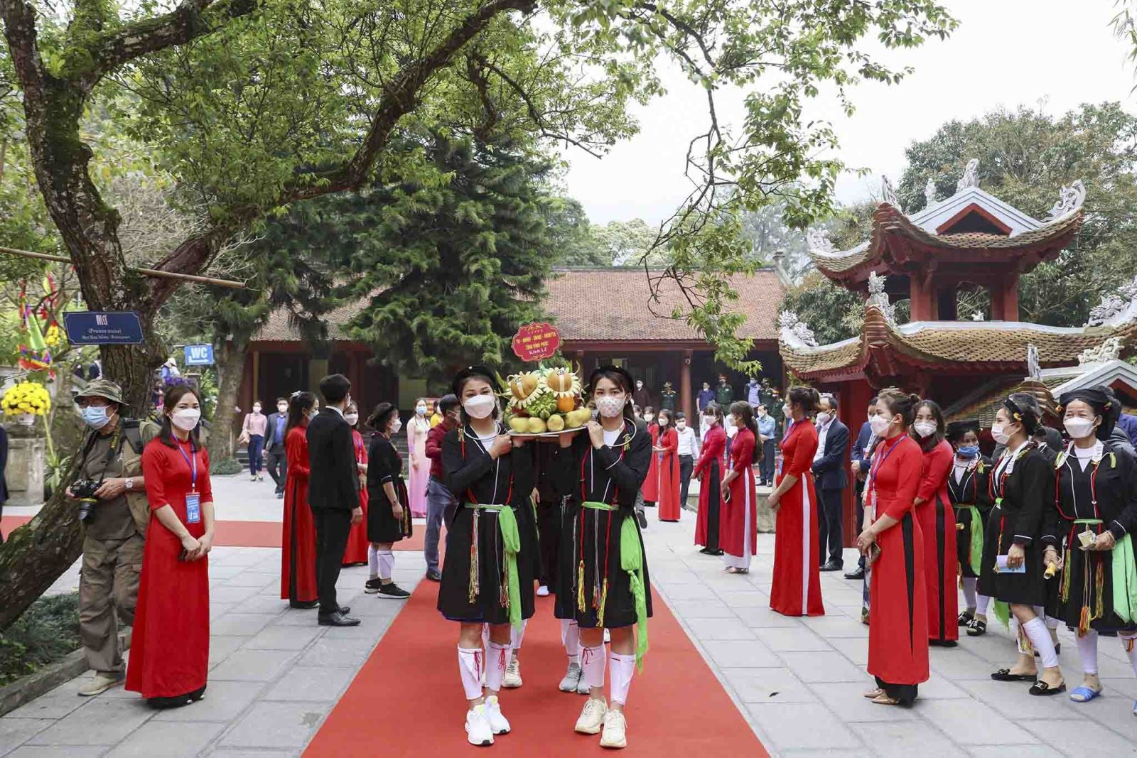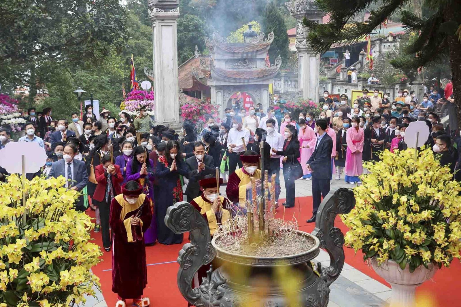 Về phía tỉnh Vĩnh Phúc có bà Hoàng Thị Thúy Lan - Ủy viên Trung ương Đảng, Bí thư Tỉnh ủy, Chủ tịch HĐND tỉnh, Trưởng Đoàn ĐBQH tỉnh; ông Phạm Hoàng Anh - Phó Bí thư thường trực Tỉnh ủy; ông Lê Duy Thành - Phó Bí thư Tỉnh ủy, Chủ tịch UBND tỉnh; lãnh đạo Tỉnh ủy, HĐND, UBND, Ủy ban MTTQ tỉnh qua các thời kỳ; các đại biểu là Ủy viên Ban Thường vụ Tỉnh ủy, thường trực HĐND, UBND, Ủy ban MTTQ tỉnh, đoàn ĐBQH tỉnh; lãnh đạo các sở, ban, ngành, huyện, thành phố, cùng đông đảo nhân dân các dân tộc trên địa bàn tỉnh và du khách thập phương về tham dự lễ dâng hương.