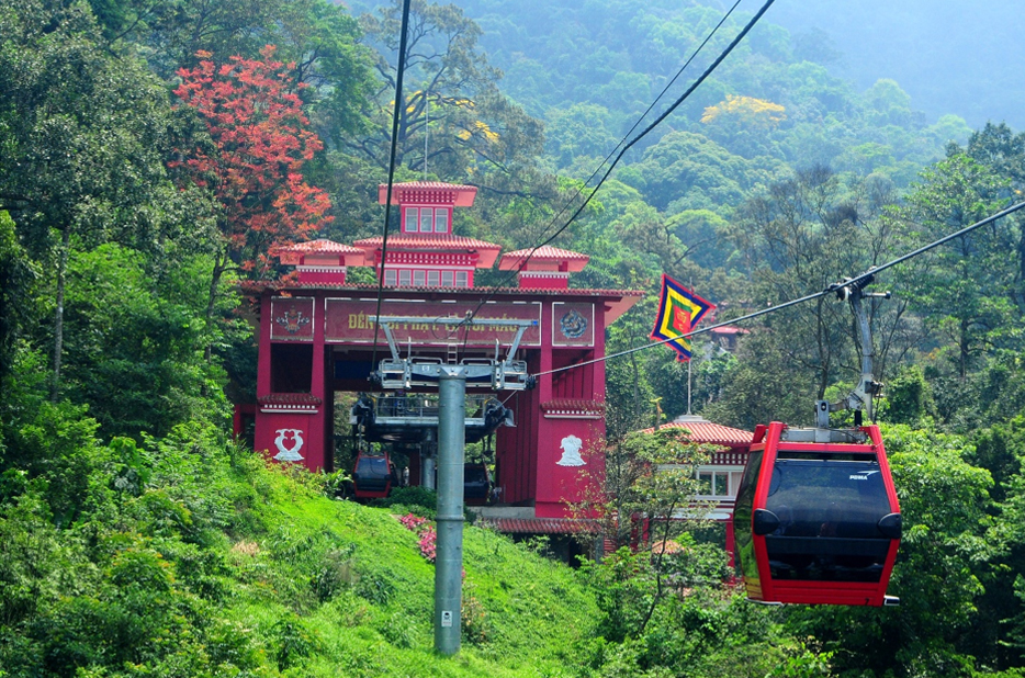 Đoàn khảo sát đi cáp treo lên khu vực đền Thượng Tây Thiên