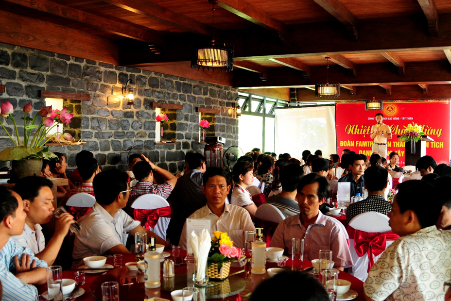 Các thành viên trong đoàn khảo sát giao lưu tại Khu dịch vụ nhà khách Tây Thiên