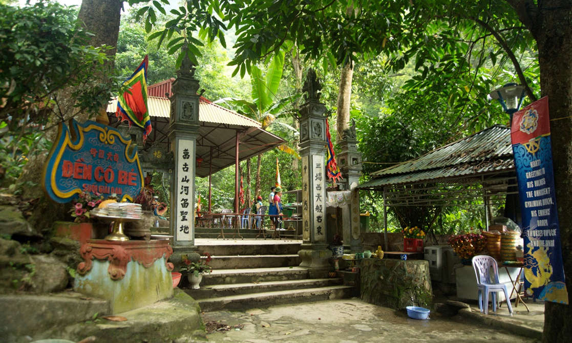Từ đền Cậu đi bộ men theo triền núi khoảng 2km nữa là đến đền Cô. Đền Cô được xây dựng từ rất lâu đời thờ Cô Bé (Cô thứ mười hai trong tínngưỡng thờ Tứ Phủ). Đềnđượctrùng tu xây dựng trên nến cũ năm 2009.