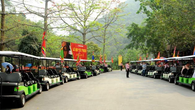 Hệ thống xe gắn động cơ điện, chạy bằng ắc-quy an toàn và thân thiện với môi trường. Xe điện được thiết kế kiểu gầm thấp, không có cửa nên gọn nhẹ, thoáng mát tạo cảm giác êm nhẹ và thoải mái cho du khách, nhất là người già, trẻ em và người tàn tật trên hành trình “Đến với Phật về với Mẫu”.